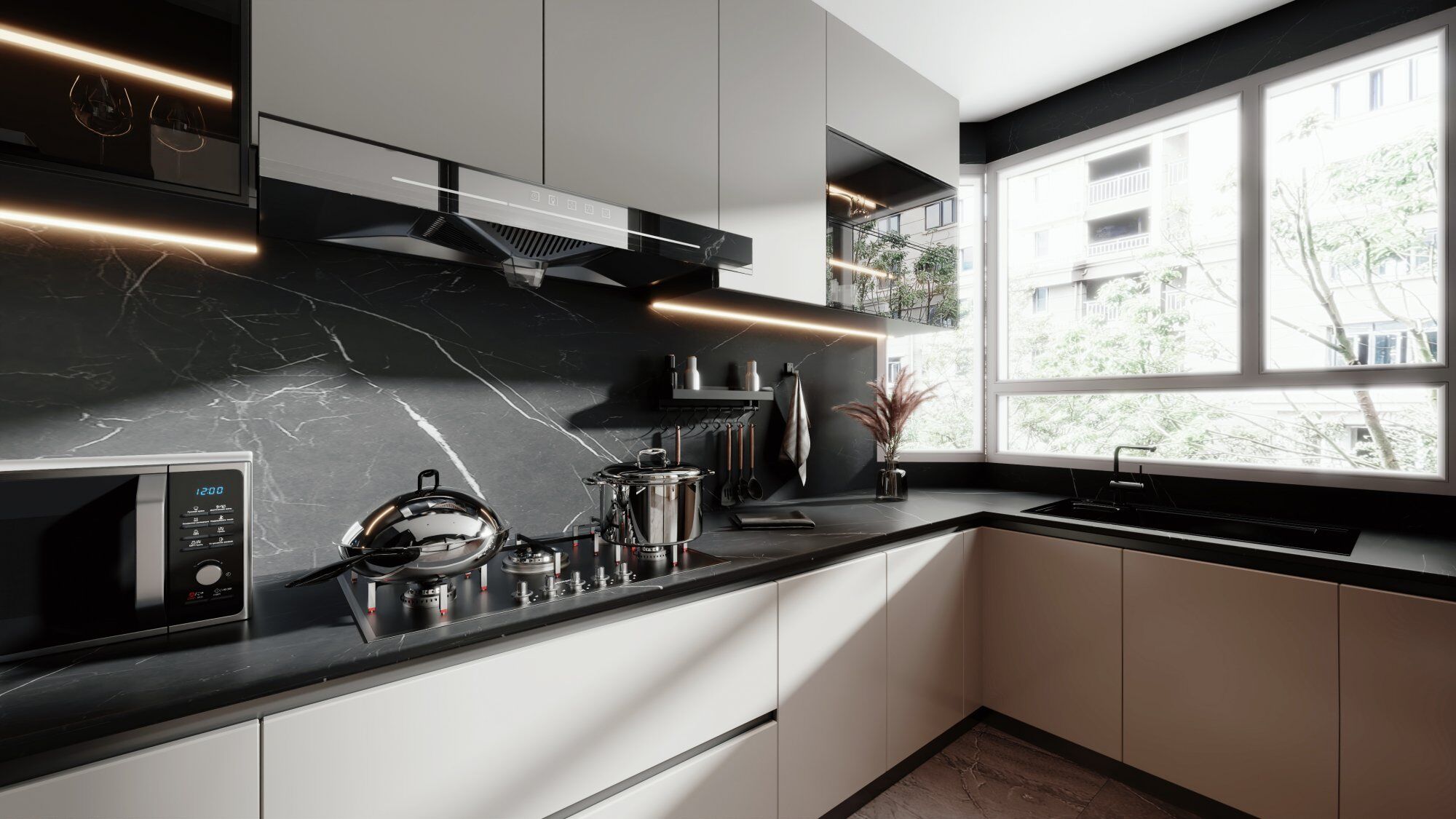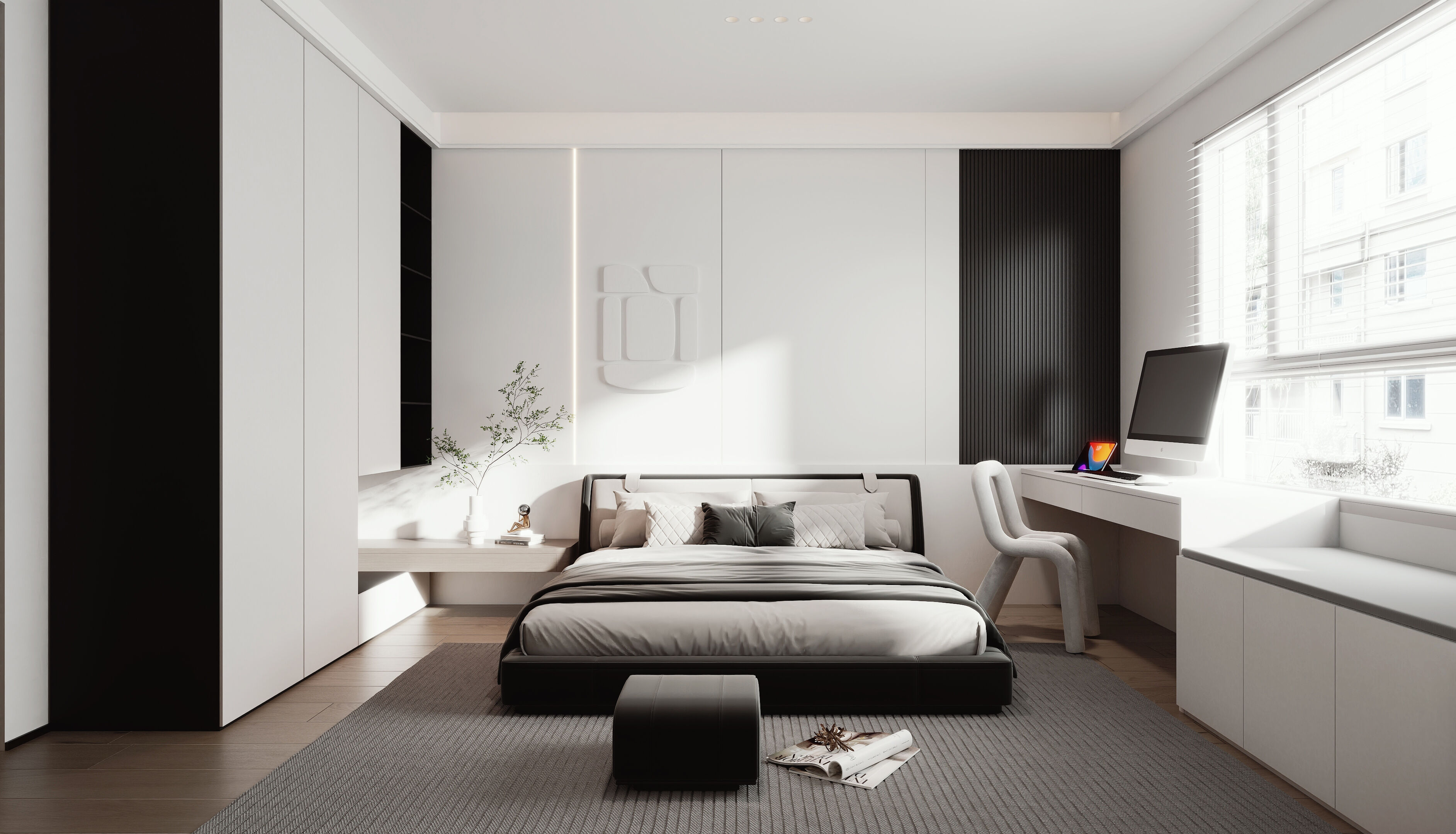 弧形墙体 + 无主灯设计,柔化空间边界,提升现代极简气质;