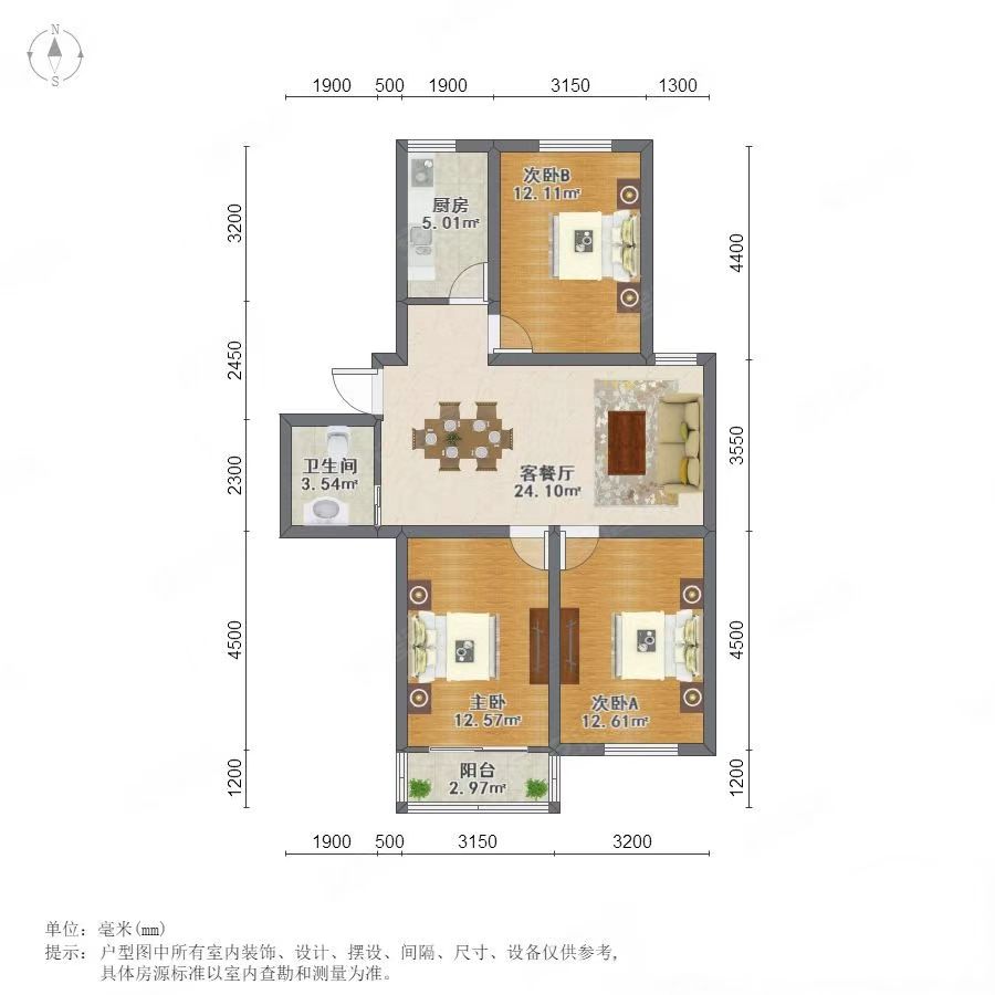 户型:3室2厅